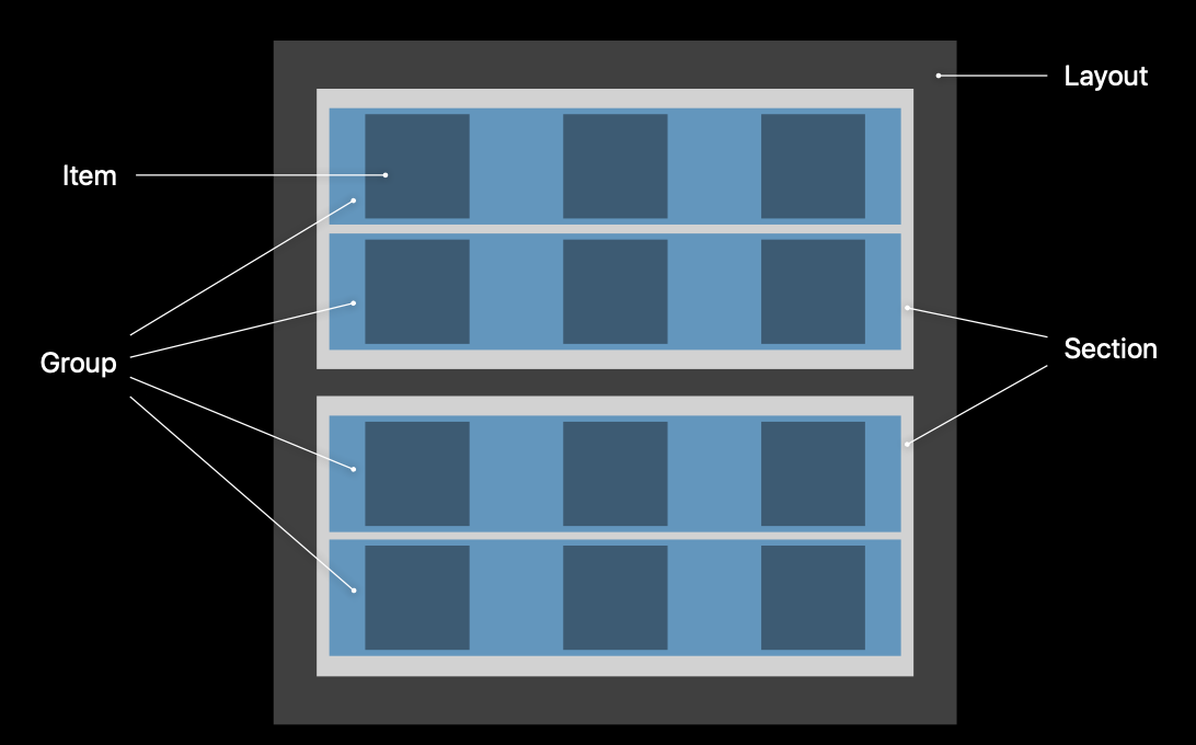 NSCollectionLayoutSection을 만들기 위해서는 → NSCollectionGroup이 필요하고,